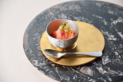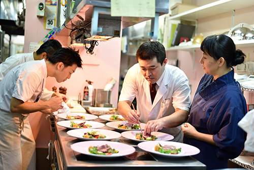 今回中村さんとのコラボイベントを終えたことで、 日常のレストラン営業とは違った達成感がありました。 当初、異業種2店舗がコラボしコース料理を 作っていくことに不安も感じましたが、 長い時間をかけ話し合い・試作をくり返す中で、 とても良い作品が出来上がったと思います。 その中で改めて和食の技術の素晴らしさも 体感することが出来ました。 お客様にもたいへん喜んでいただき、 今後の展開にも期待して頂けるとても 素敵な会になったと思います。 今後も八頭会を通して様々な事に挑戦していき、 食文化の発展に微力ながら貢献していきたいと思います。