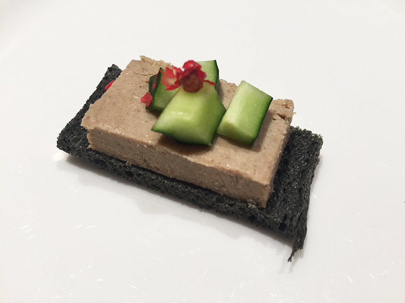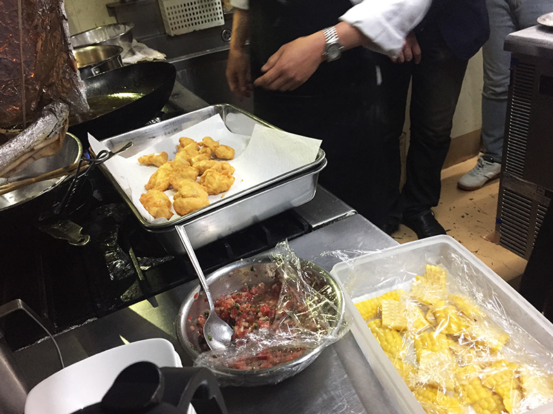 フリットはアスパラ、鶏肉、フォアグラなどを3種類の異なる生地と様々な種類の塩やスパイス塩などで試食しました。(試食は他に鮎のパテ、野菜と穴子のテリーヌも。)
