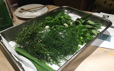 7月の八頭会では「ハーブ」をテーマにサンテミリオン渡邊シェフによる勉強会を開催しました。ハーブとスパイスの違い、各種料理に使うハーブについてフレンチ(洋食)を基本知識としてまず個々に説明。実際に各種ハーブティーや生のハーブの香りを確かめたりしながら、料理への具体的な使い方の情報交換を行いました。中華は洋食とは違う種類のハーブを使うため、ビストロチャイニーズRONの入江シェフからも興味深い話があり、加熱をするモノと生で食べるモノの違いなどさらにハーブ談義は広がりました。