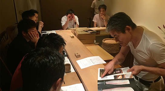 なぜ今回は料理ではなく、人体の話から始まったのは昨今流行りの「食材の熟成」と、そこから生まれる「熟成による旨味とはなにか」を感覚ではなく、もっと広い視野で考えるための船橋氏の配慮でした。実際、いま鮨や和食の業界では「素材、とくに魚の熟成」がメディアを中心に大きなブームとなりつつあります。いくつかの熟成鮨の名店といわれているお店の事例をみながら、メンバー間で洋食と和食の肉の熟成の違いを話し合いました。