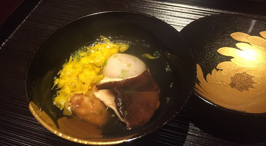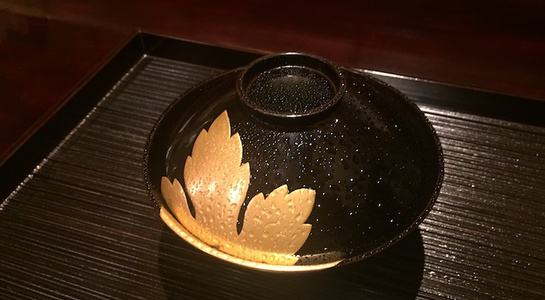 10月の八頭会は馳走なかむら主人、中村さんによる「椀物〜懐石料理と会席料理の違い」を学ぶ勉強会を開催しました。日本料理の中でも出しの技術、季節感、椀(器)の選び方など料理人としてのセンスや技量が最も問われる、椀物。煮物椀の基本的な構成の話からはじまり、茶会料理の懐石会席と宴会料理的な会席料理における「煮物椀」「ご飯」の出る順番の違いや歴史的な成り立ち、もてなしの意義といった座学をまず行い、それから実演となりました。