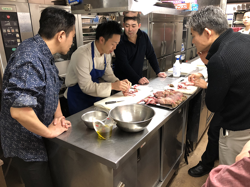 10周年を迎えられたサンテミリオン渡邉シェフが講師となり、基本となるパテの作り方を一から説明しながら、熟成保存の一歩手前までの調理を実施。(試食については出来上がってから一週間ほど寝かしたものを用意。)