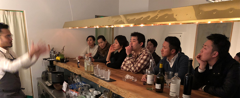 一次会終了後にはThe Certain Barに移動し、日本では珍しい洋酒や現在最先端型のカクテルカルチャーについての話などを聞きつつ、日ごととは違う「お酒の勉強会」も。(八頭会の勉強会はお酒を呑まない集まりなので。)