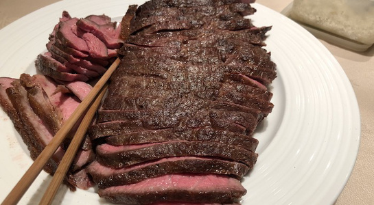 まず、牛肉と鴨肉の低温調理は表面をゆっくりと焼き、それからコンベクションオーブンへ。塩・胡椒の種類と使うタイミングの違いなどについても細かな質問が飛び交いました。(これとあわせて魚の低温調理も簡単に実演。)