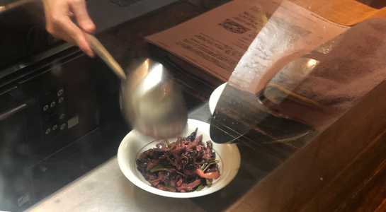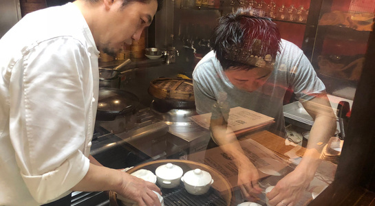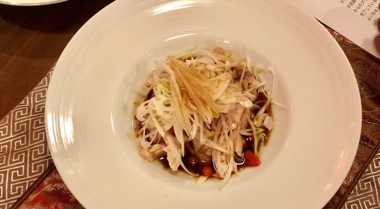 後半は薬膳料理の試食。「スープ(枸杞、棗、干し貝柱、干し山芋を小さな器にいれて3時間ほど蒸した一皿)」「炒め物(赤茎ほうれん草、陳皮、豚肉)」「蒸し鶏(枸杞、ネギ、生姜)」「デザート(甘く煮たつばめの巣)」といった4つの料理を楽しみました。
