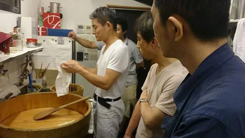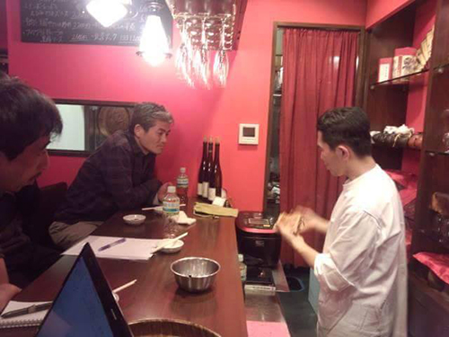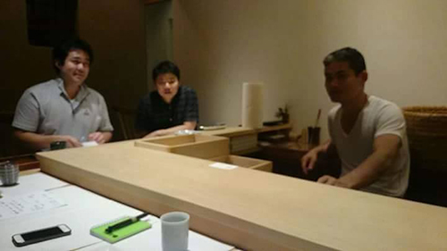 「玉子焼き」の勉強会という名目で、サンテミリオン 渡邊、江戸前鮨二鶴 船橋、寿司つばさ 黄丹が集まり、異業種での勉強会を行う。