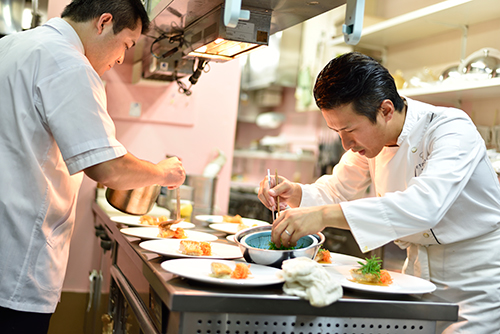 今回中村さんとのコラボイベントを終えたことで、 日常のレストラン営業とは違った達成感がありました。 当初、異業種2店舗がコラボしコース料理を 作っていくことに不安も感じましたが、 長い時間をかけ話し合い・試作をくり返す中で、 とても良い作品が出来上がったと思います。 その中で改めて和食の技術の素晴らしさも 体感することが出来ました。 お客様にもたいへん喜んでいただき、 今後の展開にも期待して頂けるとても 素敵な会になったと思います。 今後も八頭会を通して様々な事に挑戦していき、 食文化の発展に微力ながら貢献していきたいと思います。