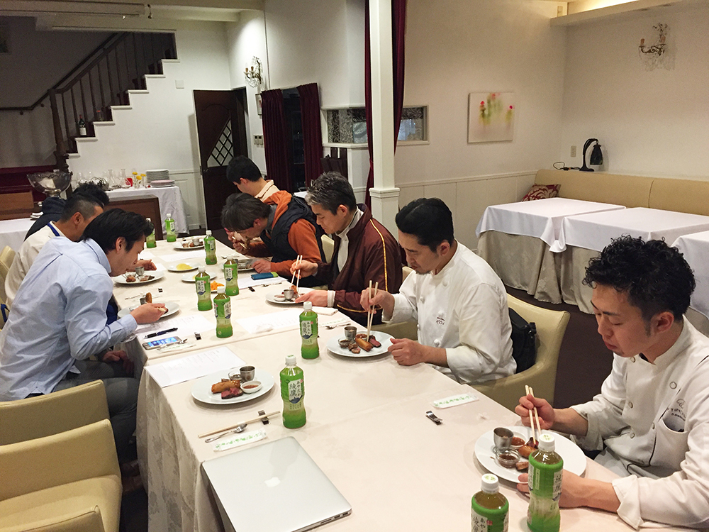 試食後はフレンチの技法を和食、中華、寿司と各店の日々の営業にどう活かしていくのか、ということの意見交換も行いました。