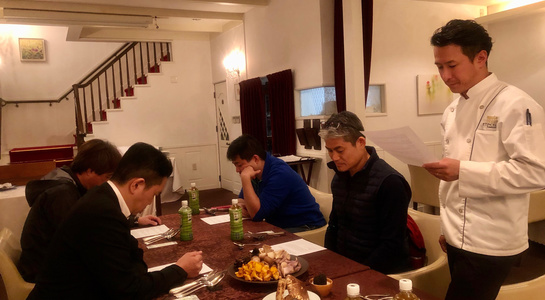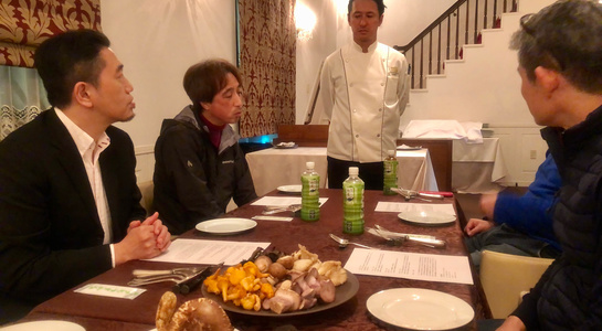 今年の八頭会は2月からのスタート。2019年初の集まりということで、ノンアルコールのシャンパンで乾杯してから今年の活動について話し合いました。消費税増税、オリンピック、ミシュラン福岡・佐賀・長崎2019の発売など色々な動きがある今年、自分たちは基本に立ち返り「異なるバックグラウンドの料理人同士による高いレベルでの技術交配」を会として重ねていく指針で一致しました。今年も八頭会をよろしくお願い申し上げます。